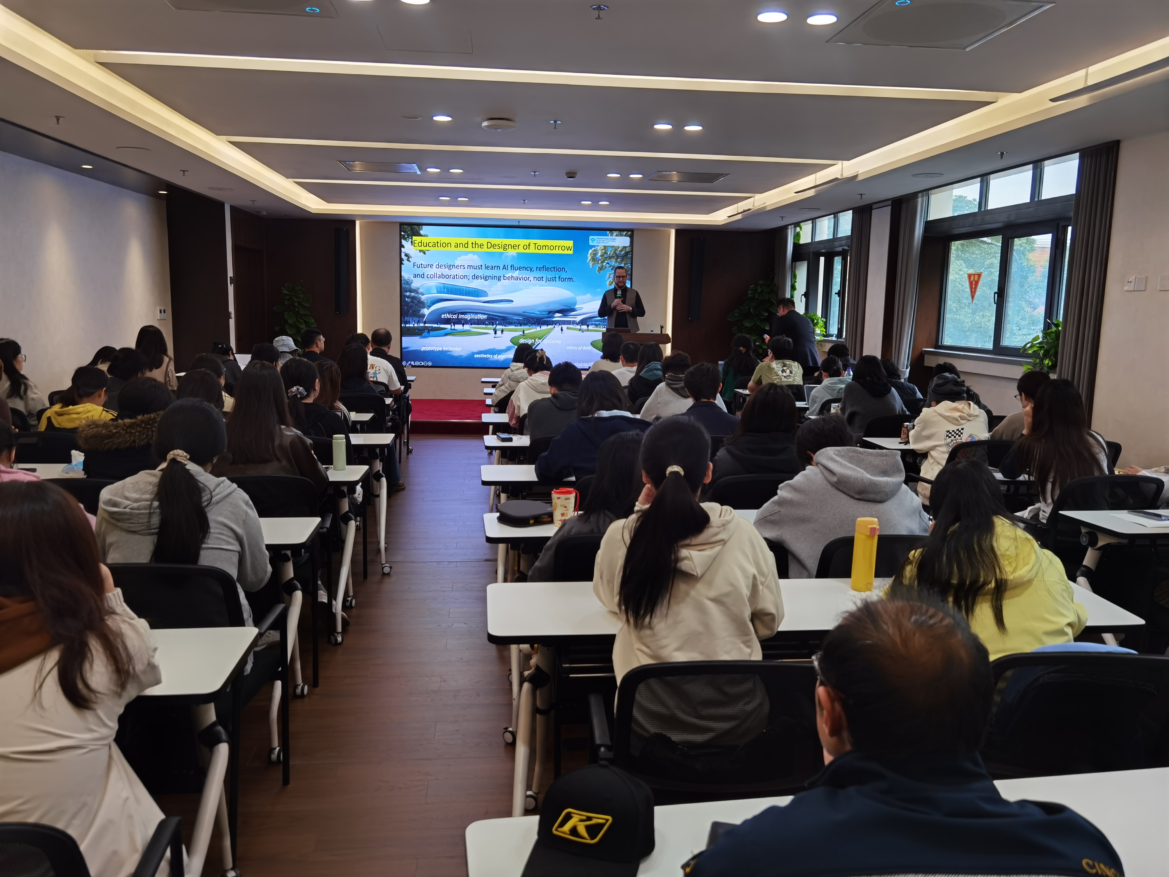 11月7日上午,国际知名设计师、德国贺迈设计机构首席设计官贺迈(Mathis Heller)应邀访问上海理工大学,并以《价值重构:人工智能时代的设计战略与产业赋能》为题发表主旨演讲。本次活动为学校师生带来了一场关于人工智能如何深刻变革设计行业的前沿思想盛宴。贺迈先生是2021年山东省人民政府“齐鲁友谊奖”获得者,曾任职于宝马设计工作室、德国国家铁路等知名机构,其作品屡获德国红点至尊奖、iF设计金奖等国际顶级奖项。