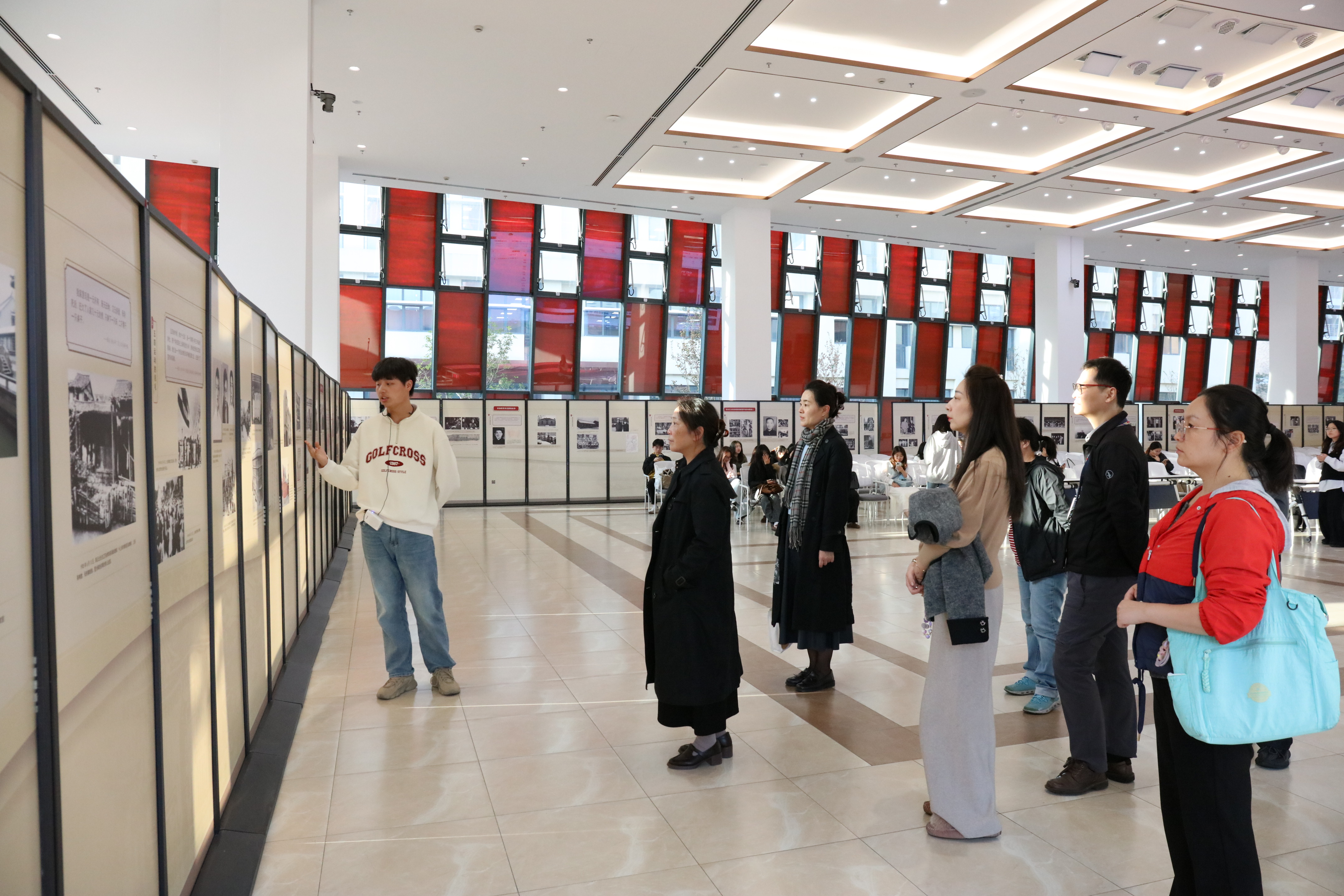 展览现场,出版学院产品设计专业姚中威同学担任讲解员,展览现场通过珍贵图片、文献资料,生动再现了陈云同志波澜壮阔的革命生涯。从新民主主义革命时期坚定支持毛泽东同志正确主张、撰写《随军西行见闻录》宣传红军长征,到社会主义革命和建设时期主持全国财政经济工作、稳定金融物价,再到改革开放后推动拨乱反正、探索社会主义经济新体制,党员教师们循着历史脉络,深刻感悟了陈云同志“为人民的利益而斗争”的崇高信仰和“德才并重,以德为主”的育人智慧。