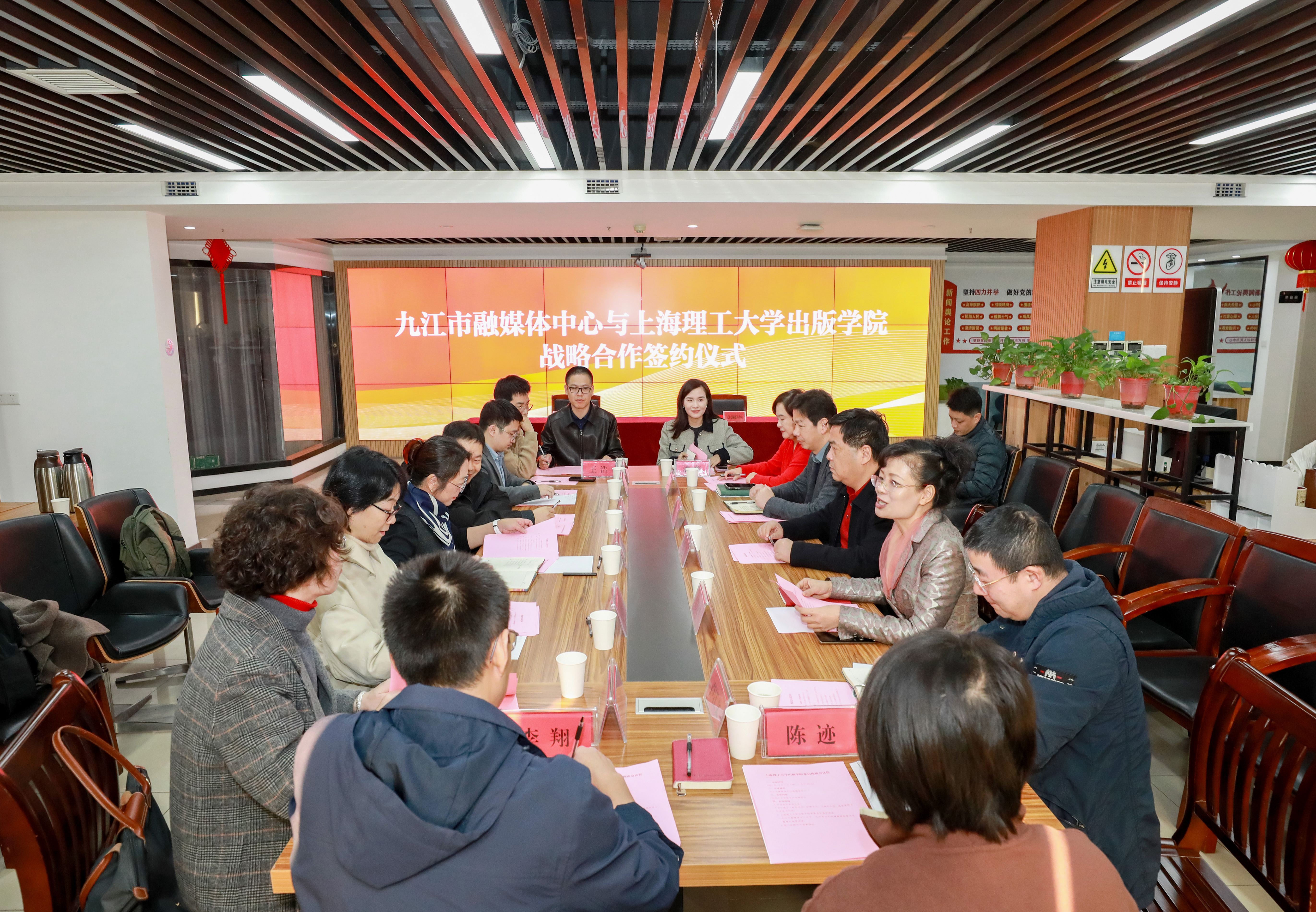 12月2日,经上海理工大学九江创新研究院引荐和推动,上海理工大学出版学院党委书记张华一行应邀至九江市融媒体中心(集团)走访交流,并与九江市融媒体中心签订《战略合作框架协议》。双方将共同构建集科技创新、媒体传播与产业应用于一体的新型合作平台,充分发挥学院科研与人才优势,助力地方主流媒体转型升级,共同探索“媒体+科技”融合发展的新范式。九江市融媒体中心主任,市文化传媒集团党委书记、董事长张雷、九江市融媒体中心副主任(副总编辑)江晓坚等参与此次活动。