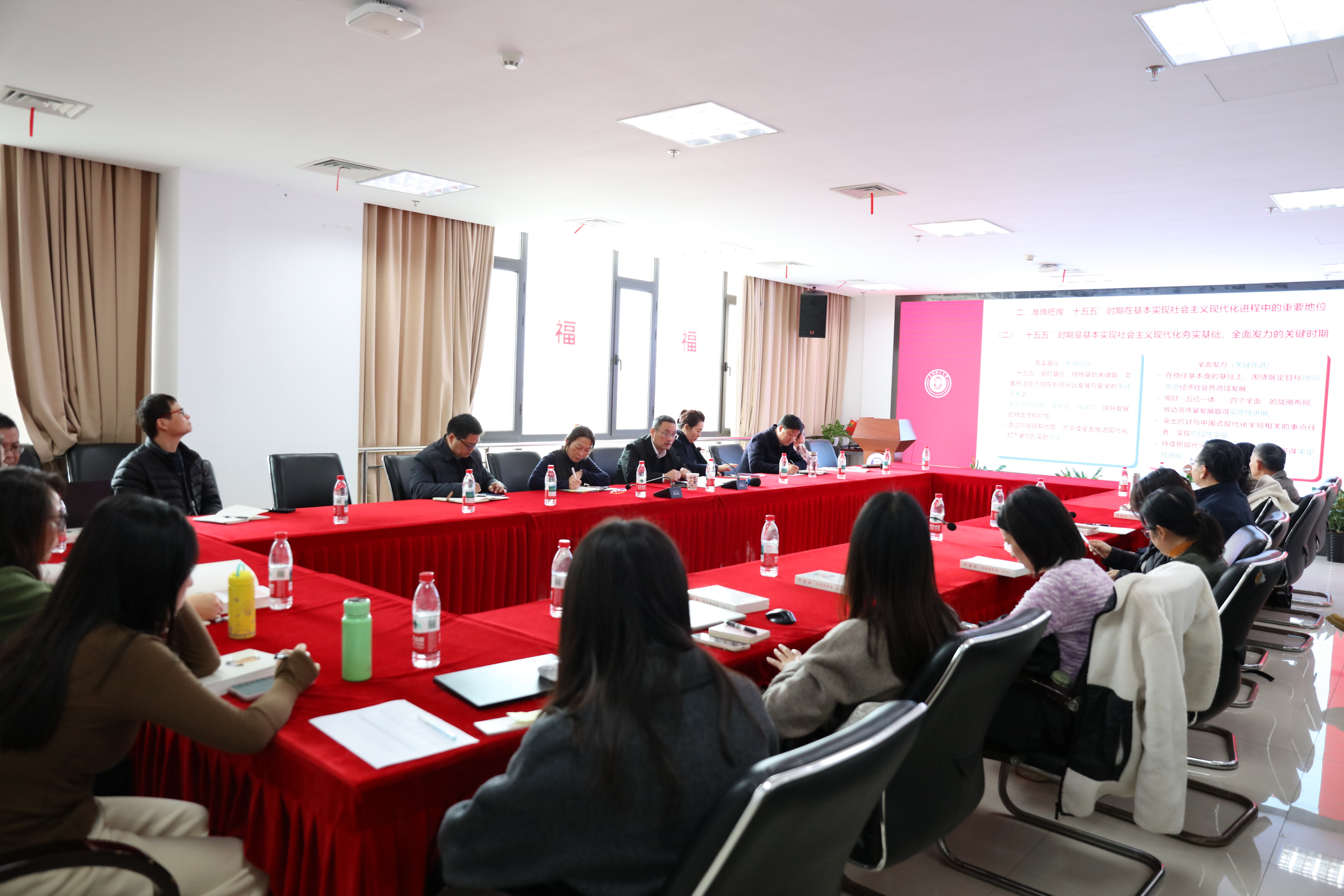 为深入学习贯彻党的二十届四中全会精神,准确把握“十五五”时期发展蓝图,并将其与学校、学院发展实践紧密结合,12月23日中午,校党委常委、总会计师赵明来到出版学院,以“学习贯彻党的二十届四中全会精神——为高质量发展培养卓越工程创新人才”为主题,为学院新闻传播学党支部全体教师党员讲授了一堂深刻而生动的专题党课。学院领导班子成员、党委委员一同参加学习。