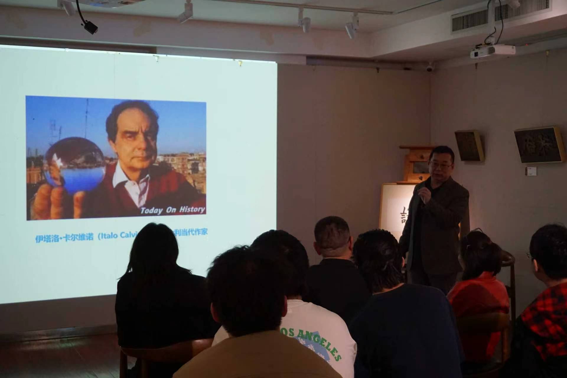 4月23日,第31个世界读书日下午,“卡尔维诺:现代小说的最后高峰或绝响?”美·谈主题讲座在沪江美术馆二楼举行。本次讲座特邀国内知名作家、评论家赵松担任主讲,赵松以数十年的文本研究与创作积淀为基础,将卡尔维诺置于二十世纪世界文学史的宏大坐标中,完整梳理了其创作生涯、文学思想与艺术成就,并与现场师生展开了热烈深入的互动交流,为这个特别的日子献上一场兼具思想深度与文学美感的精神盛宴。