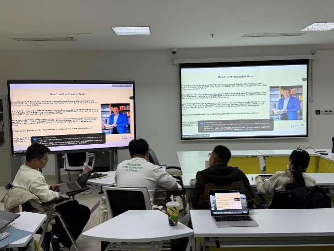 出版与数字传播系系主任程海燕、副系主任徐立萍,罗梦雨及相关骨干教师,出版专业博士及部分硕士研究生共计30余人参加了线上会议,会议由出版与数字传播系丛挺教授主持,罗梦雨老师负责现场翻译。