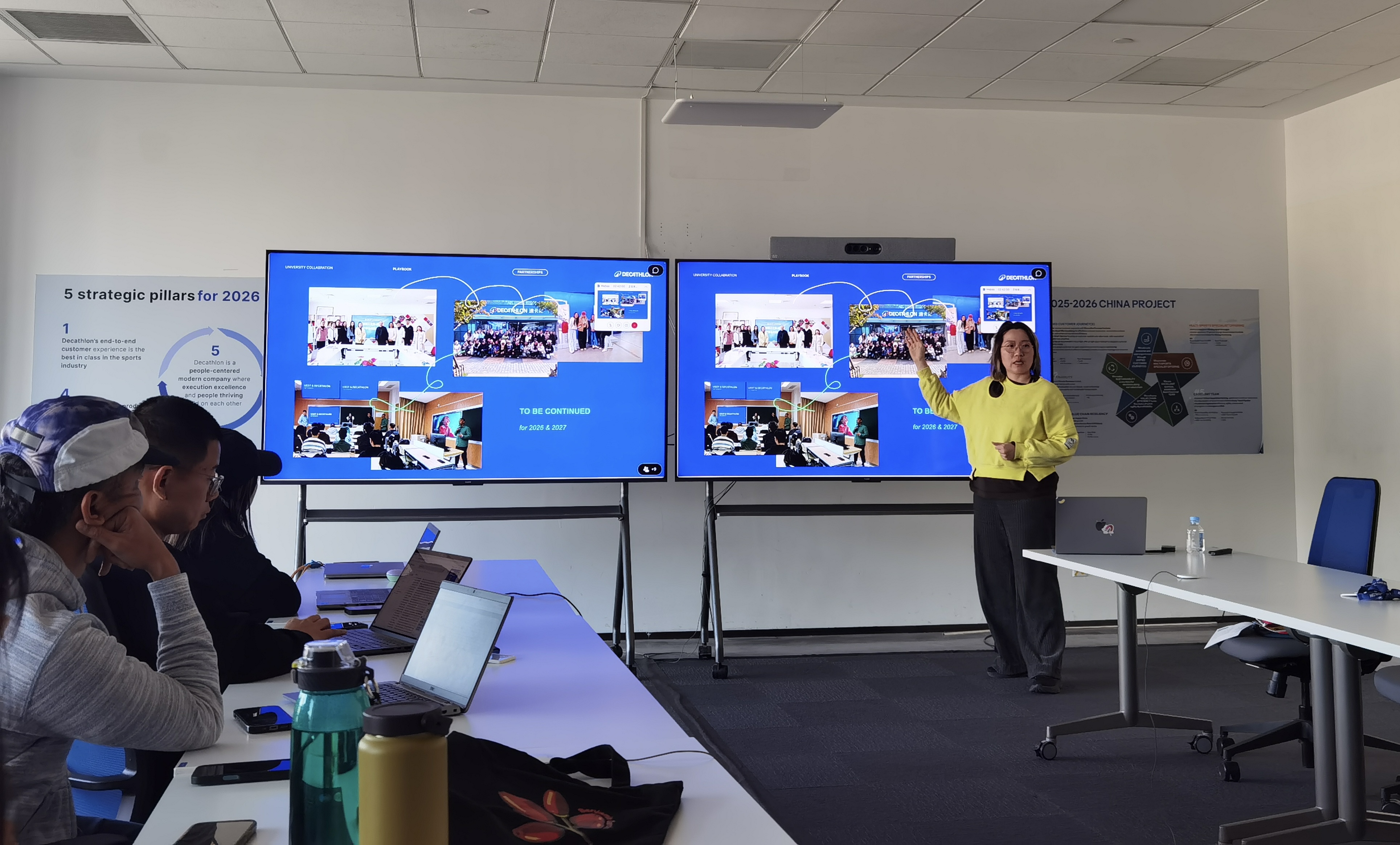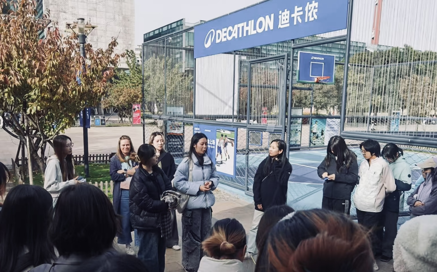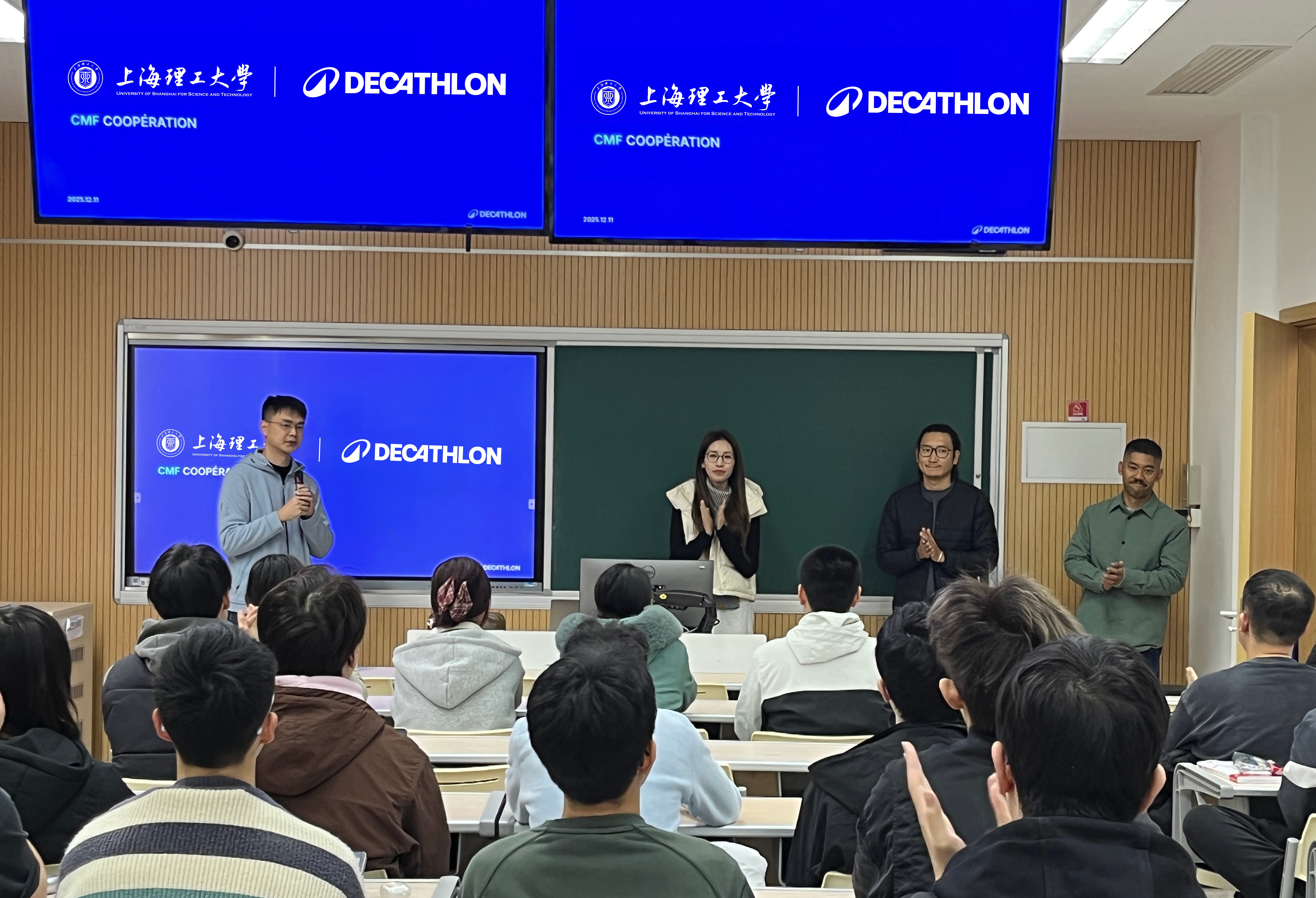 依托2025年秋季学期《CMF(色彩、材料与工艺)设计》课程,2025年11月27日,工业设计系学生赴迪卡侬五角场店开展实地调研,在迪卡侬亚洲设计研发中心团队的指导下,结合课堂理论与实际商业场景进行产品观察与用户分析。12月12日,迪卡侬设计团队走进校园,系统讲解产品线策略与CMF全流程设计方法,推动产业经验与学术教学深度融合。在课程实践中,学生围绕迪卡侬“Mobility”产品线展开调研与趋势提案,并在结课汇报中展示多项高素质设计成果,获得企业方高度评价。